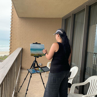 One of the things that I have gotten more in a habit of doing, is taking my plein air painting equipment with me. The problem is.....I hate painting where there are people. I am terrified of anyone stopping to speak to me. So, that explains why I can be found painting on a balcony a porch, alone. I fear criticism, the all too often comment, "My mom can paint like that," or "what is that supposed to be?" The questions and comments are endless. I thought I was alone in this, but I have read it is a pretty common fear amongst some plein air artists. I feel this fear has caused me to miss out on some awesome painting opportunities.